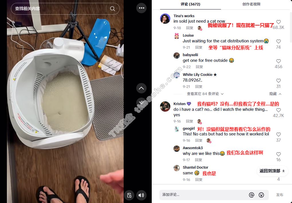 谁能想到?一条2分钟的自动猫砂盆讲解视频,在TikTok上竟斩获超4600万播放量!评论区里甚至有网友调侃:“明明家里没猫,却把视频从头看到尾”……