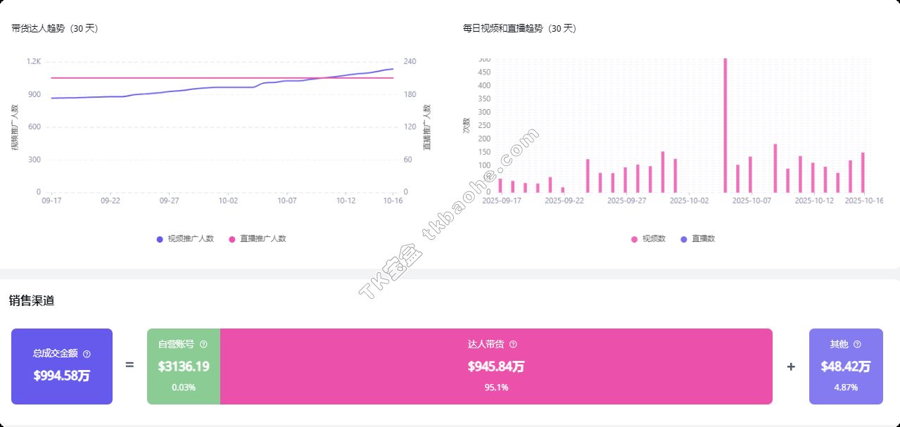 这种达人合作模式的效果远超预期:数据显示,TikTok达人带货为PetPivot带来945.84万美元收益,占品牌总销售额的95.1%。