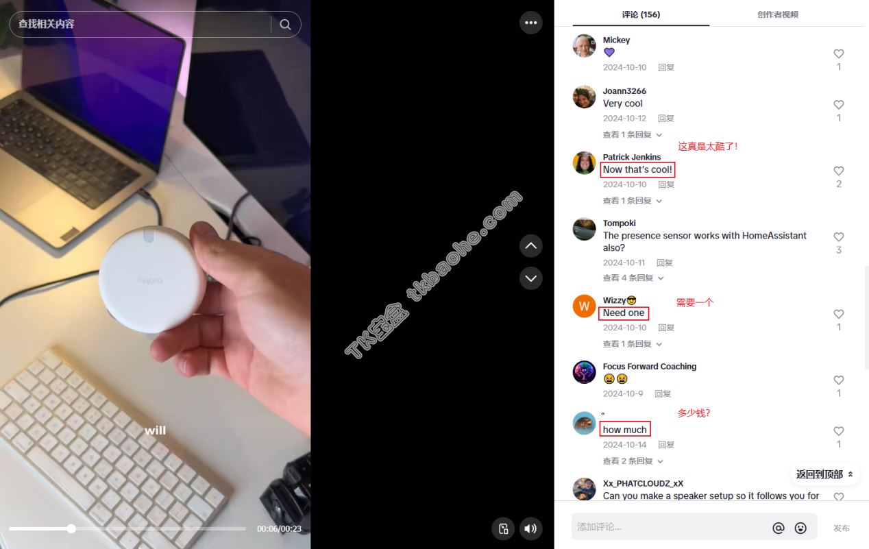 拥有270万粉丝的TikTok科技达人@thejunglebadger,就为Aqara场景传感器拍摄了居家实测视频:镜头中,达人展示了传感器的安装过程,以及通过手机APP实时监测“有人/无人”“进入/离开”状态,甚至在光线昏暗时自动操控智能照明的功能。