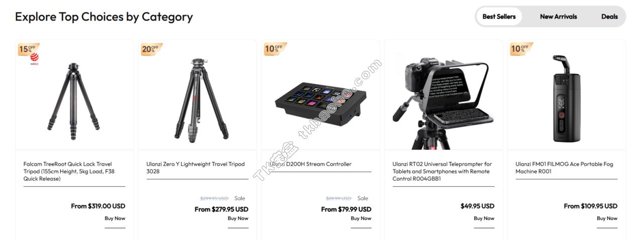 速卖通作为Ulanzi早期出海的重要起家平台,其摄影配件曾拿下速卖通Camera&Photo类目的销量第一,产品覆盖俄罗斯、西班牙、法国等市场,主打高性价比爆款路线。此外,品牌还入驻了eBay平台,借助欧美二手及长尾市场补充渠道,覆盖小众配件与专业用户群体。