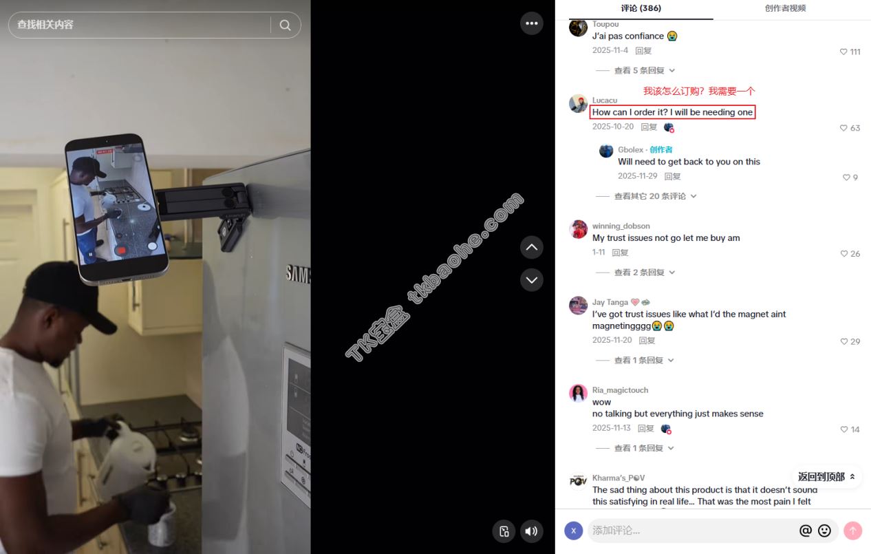 这种“教学演示+成片展示”的内容结构极具说服力,不少观众在评论区主动询问购买渠道:“我该怎么订购?我需要一个。”事实证明,通过专业达人进行场景化功能演示,能够消除用户顾虑,显著提升产品的购买转化。