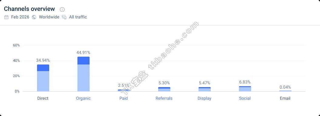 在流量爆发的同时,Magcubic品牌也在搭建自己的独立站。Similarweb数据显示,2026年2月,Magcubic独立站月访问量已超过19万。从流量来源来看,自然搜索占比高达44.91%,直接访问占比34.94%,两者合计贡献了近80%的流量。这也能看出,Magcubic独立站是典型的SEO驱动型网站,搜索引擎是其最主要的流量入口。相比之下,付费搜索仅占2.51%,说明流量增长主要靠品牌认知的自然沉淀,而不是靠广告投放硬推。独立站能做到这个程度,品牌才算真正在海外市场站稳了脚跟。
