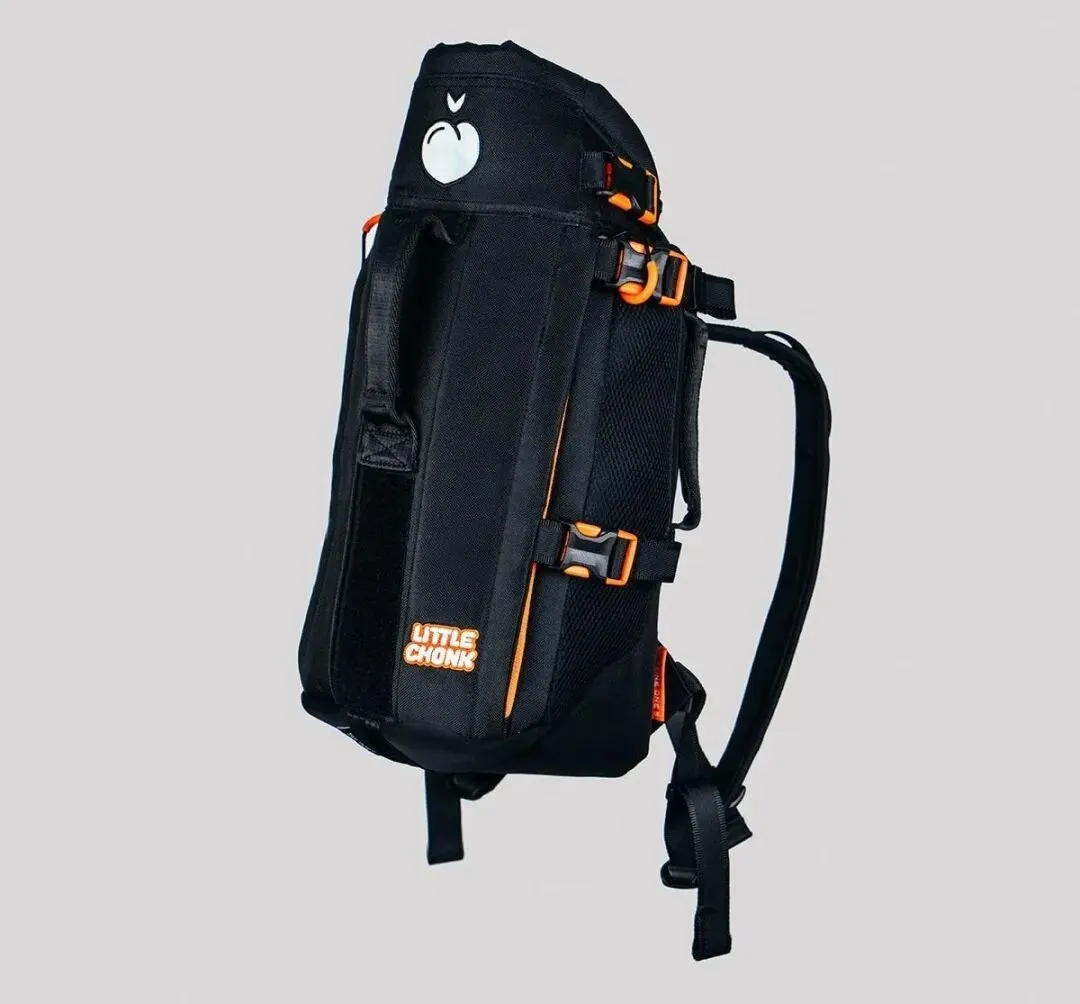创始人Bryan Reisberg在2015年领养了一只柯基,取名Maxine。那个年销百万的狗背包被命名为Maxine One。Maxine小时候很胖,大家都叫她little chonk(小胖墩),品牌因此得名Little Chonk。品牌logo是形似柯基臀部的水蜜桃造型。Maxine One背包的发布日期选在2021年12月15日——Maxine的六岁生日。