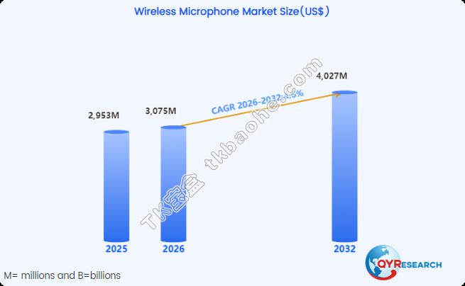 技术扎实了,市场也给机会。数据显示,2023年中国数字无线便携麦克风销量达到473万台,同比增长5.2%;其中新型无线智能麦克风销量暴增443%,突破100万台。从全球看,2025年全球无线麦克风市场规模为29.53亿美元,预计到2032年将达40.27亿美元,年复合增长率(CAGR)为4.6%。