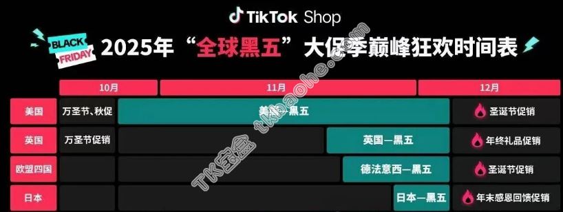对出海卖家而言,最大的利好消息莫过于TikTok Shop首次全球黑五正式定档!此次大促覆盖美、英、日等多个核心市场,活动周期从10月下旬持续至12月初,平台更是豪掷超百亿站内外曝光资源,全力助推卖家爆单。