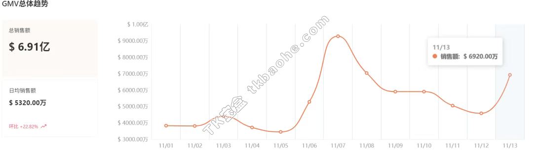 二、大盘持续上扬:11月GMV破6.91亿美元,热销品名单曝光