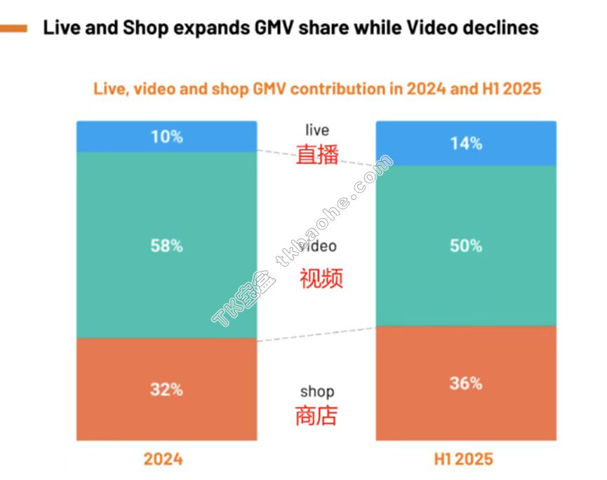 Momentum Works在一份专项报告中,对TikTok Shop美国市场收入结构进行了深度拆解。结果显示,今年上半年,尽管TikTok Shop美区店铺直接销售的GMV占比有所提升,但短视频挂链销售与直播带货仍是核心出单渠道,合计占比超60%。该机构进一步预判,随着TikTok算法持续提升电商内容权重,未来视频与直播带货的GMV占比有望突破75%,内容电商的主导地位将进一步巩固。