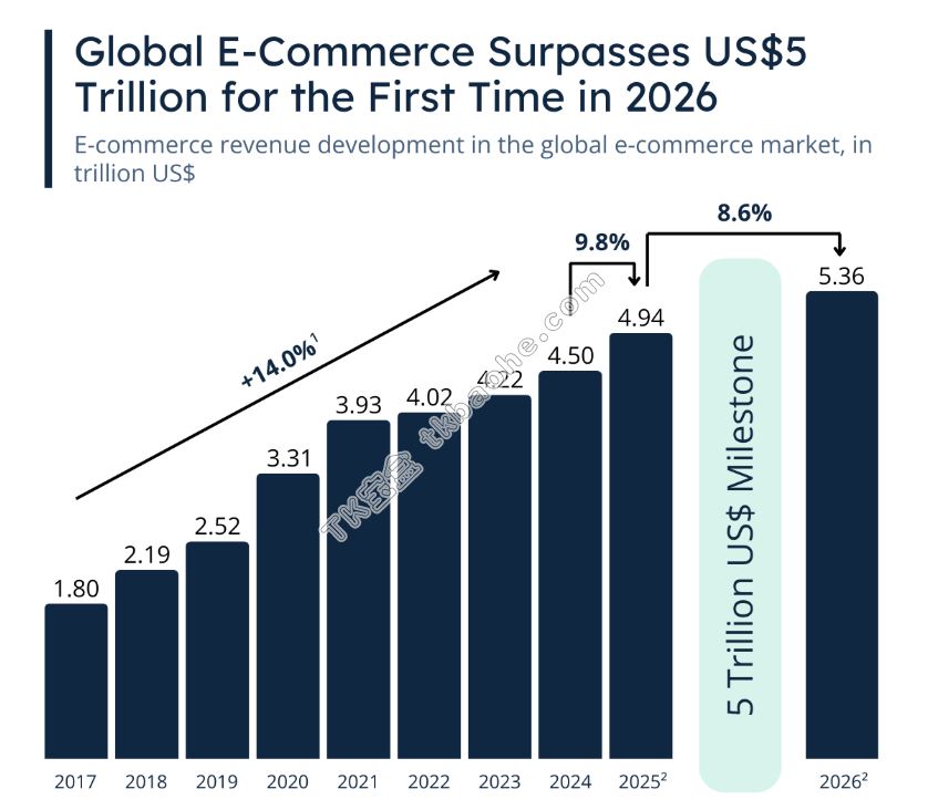 当然,京东此时杀入欧洲,面对的并非一片蓝海。根据ECDB发布的《2026全球电商市场前景预测》,欧美电商市场增速已放缓至5%以下,行业正进入存量竞争阶段。市场上既有亚马逊这样的全球巨无霸,也有速卖通、Temu等已经深耕多年的中国同胞,还有欧洲本土的各类零售商。