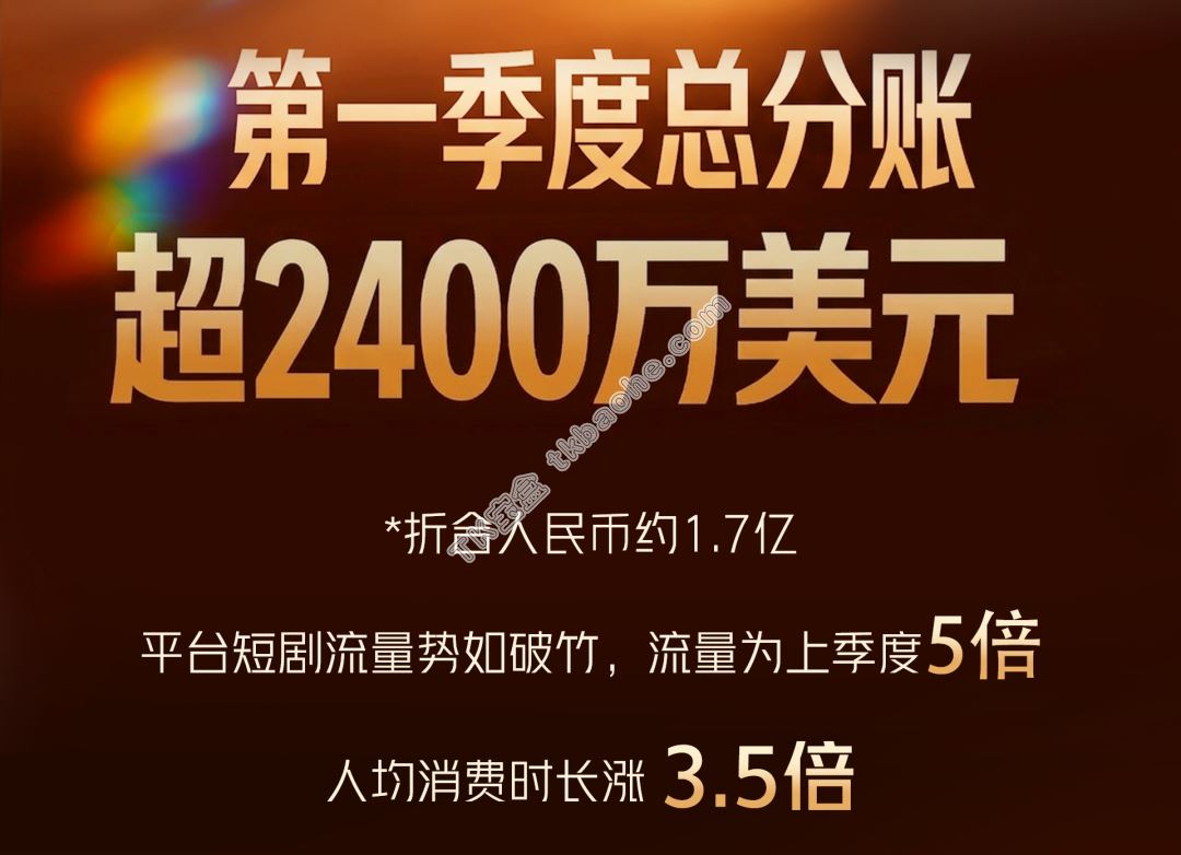 TikTok短剧Q1分成暴涨至2400万美元:AI剧异军突起,单季斩获200万,头部版权方最高分账300万