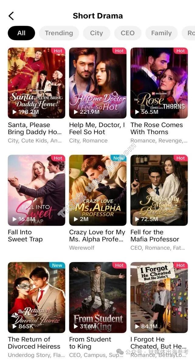 事实上,这一布局并非临时起意。早在去年11月,TikTok就已在美国申请了“TikTok Drama”商标,涉及短剧、电视节目及网络剧的开发与制作。目前已有约20家微剧制作公司通过小程序功能接入TikTok,包括SnackShort、NetShort和YuzuDrama等品牌。从开放合作、到整合入口、再到亲自下场做内容,TikTok在短剧领域的战略决心已经相当清晰。接下来,这场海外短剧的竞赛,只会越来越精彩。
