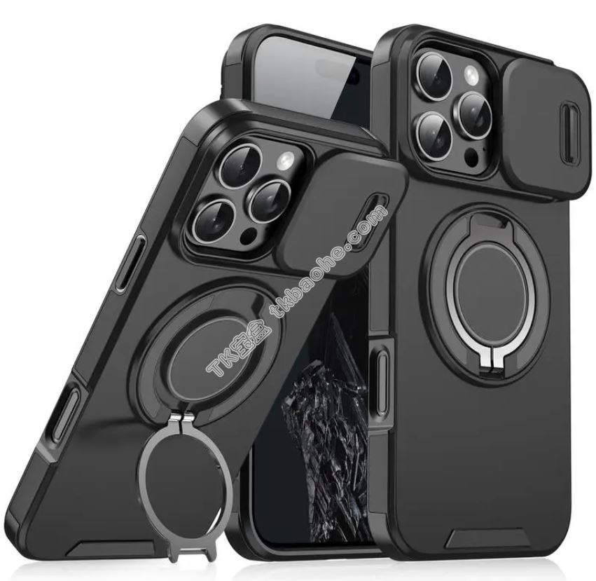 这款手机壳采用军用级防摔材质,通过全包式设计实现对手机的全方位、无死角保护;背面配备可旋转环形支架,既能帮助用户固定手机角度、解放双手,还能提供防脱落的单手握持体验。