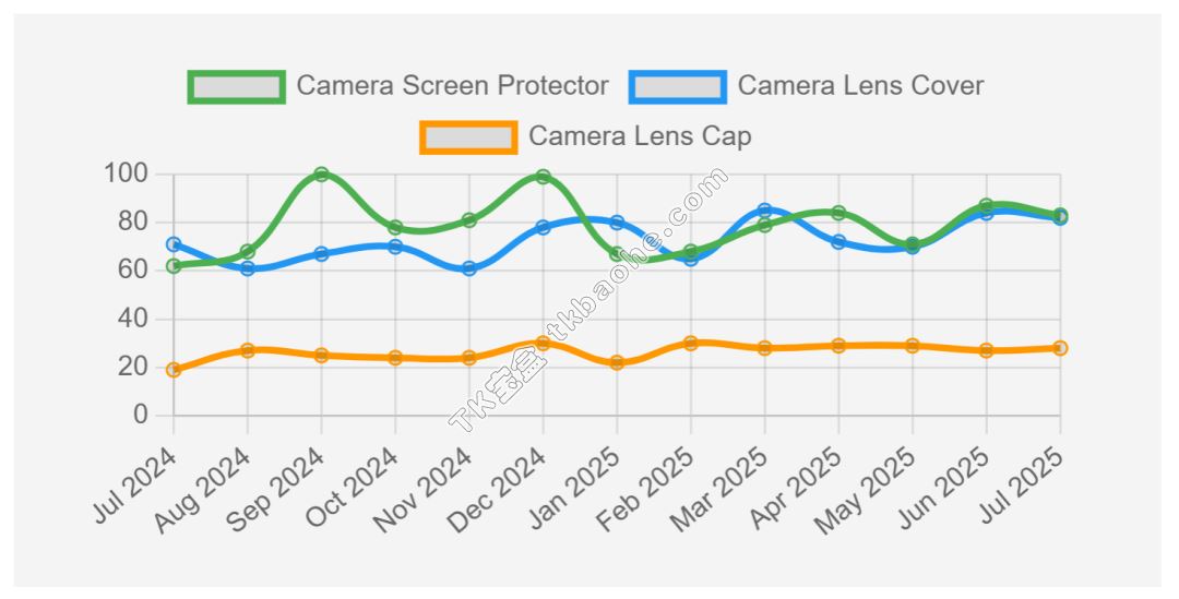 这类专业镜头模组保护壳,多采用耐用性强、透光性好的钢化玻璃材质;此外,“可降解材料”“符合可持续理念”等属性,也成为产品卖出高客单价的关键卖点。市场观察人士指出,这类产品在节假日期间的需求尤为旺盛——2024年12月,谷歌搜索中“camera screen protector”的搜索量同比上升99%,成为手机保护壳类目下增长最显著的关键词之一。