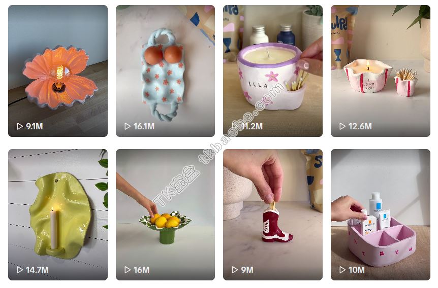一段段加速播放的黏土制作视频,搭配轻快的背景音乐,让用户在十几秒内就能看完一个作品从一块黏土到成品的完整蜕变。