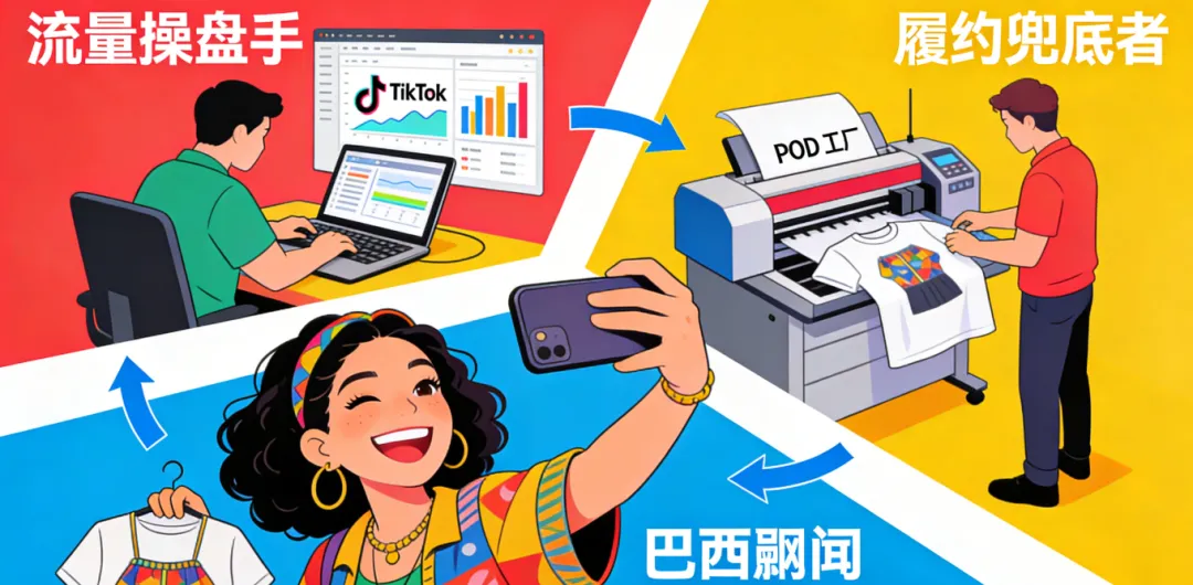 TikTok巴西本土POD能稳定盈利,关键在于“分工清晰、高效配合”,这3个核心角色缺一不可。新手先找准自己的定位,再启动操作,避免走弯路。